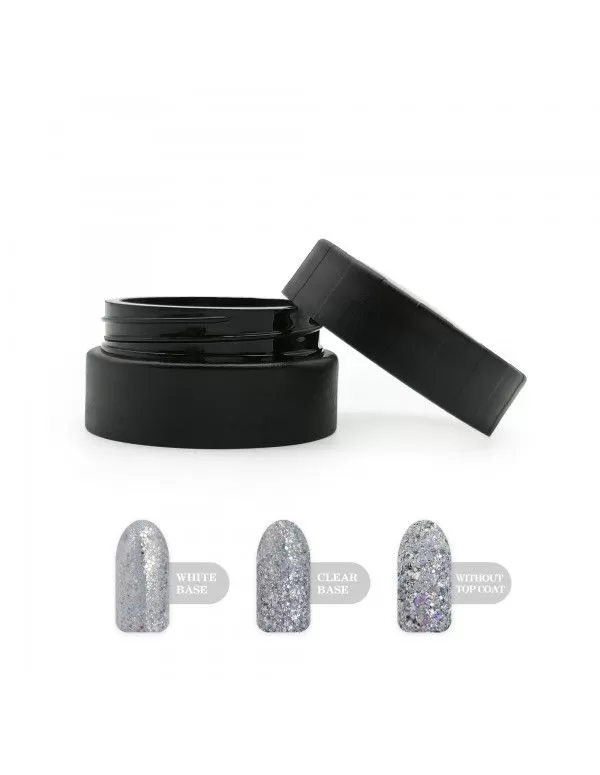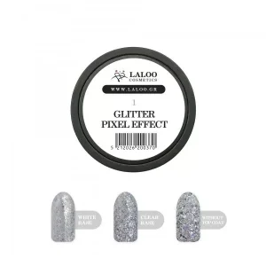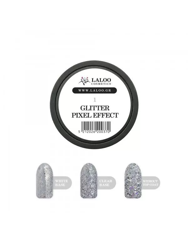 Πασπαλίστε με Glitter Pixel Effect το χρώμα που έχετε ως βάση και κλείστε με μια στρώση Non Wipe Top Coat για να κλειδώσετε το αποτέλεσμα.